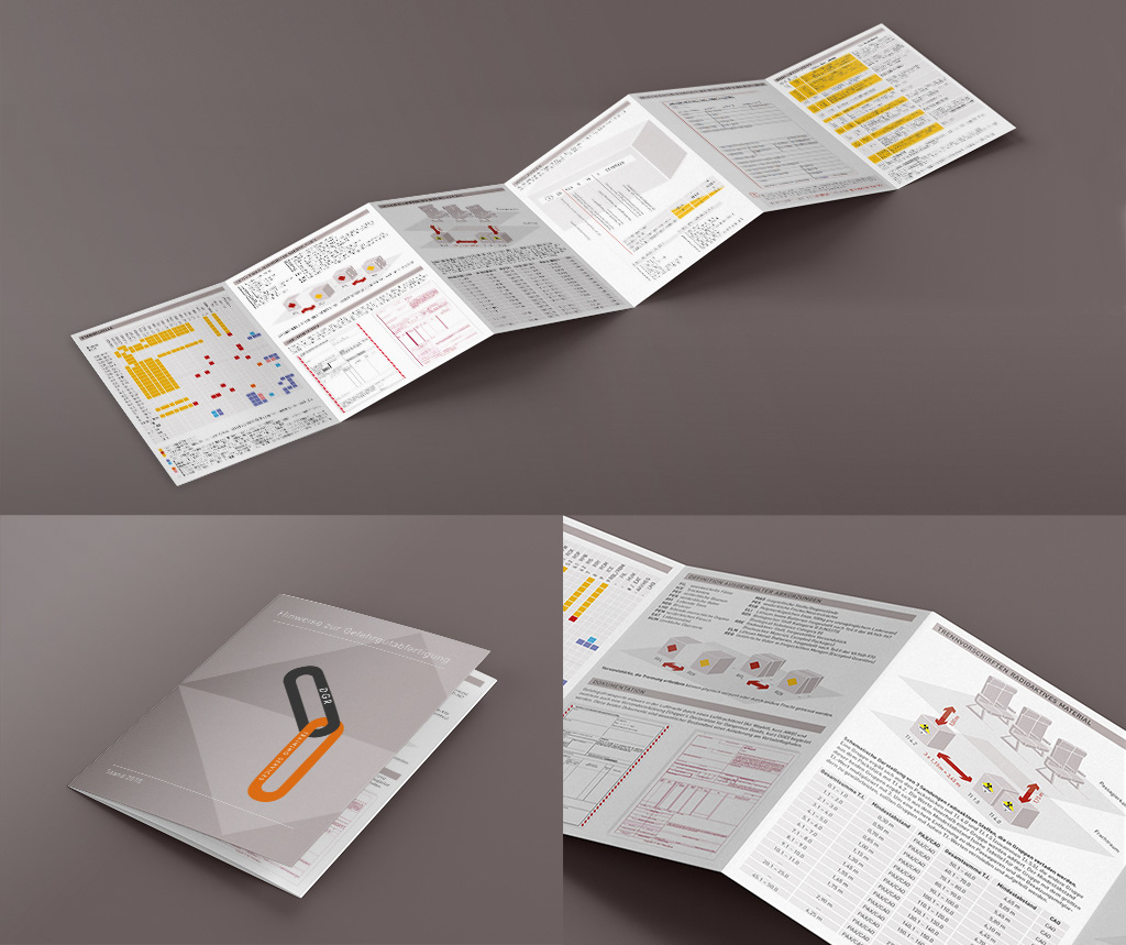 client: DGR Training Services pocket format (DIN A6) instruction sheet for dangerous goods handling in air cargo. editorial design, illustration