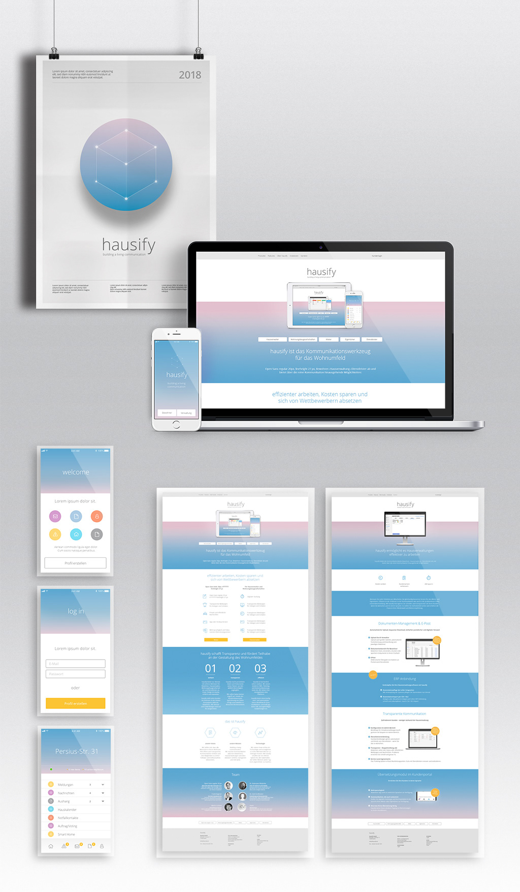 Visual branding for a Berlin-based start up. Hausify‘s goal is the simplification of tenant-landlord-service-provider communication. graphic design, UX/UI, art direction