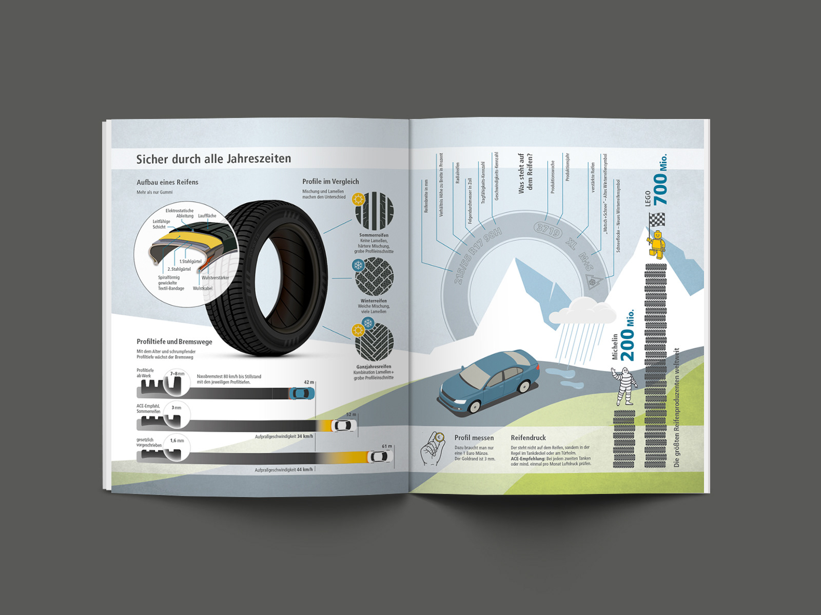 Infographic for the Auto Club Europa's monthly club magazine about car tires.